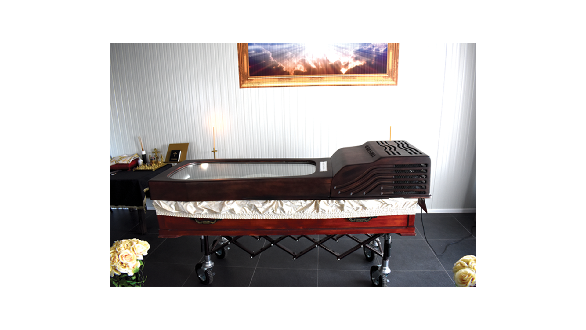 - Refrigerator for preservation and cooling of the dead body, with double glass lid and LED lighting. If you are looking for a refrigerator that can be used for short-term storage of the dead body or for keeping it at home overnight, this is the perfect one for you. The refrigerator has a double glass lid that does not fog up due to the temperature difference, so that you can see the dead body clearly. The refrigerator also has LED lighting, that creates a pleasant and respectful atmosphere. The refrigerator has a powerful cooling system that maintains the temperature, from -5°C to +5°C, depending on your preference. The refrigerator is specially designed to distribute the cold air evenly inside, so that the dead body is preserved in the best possible way. The refrigerator is also specially designed to fit all kinds of coffins, even the hexagonal ones. The refrigerator consists of two parts for easy transport. We also offer special transport bags with the refrigerator. The lid of the refrigerator (the outer part) is hand-sewn for us. The refrigerator is one of the most innovative and versatile products that we offer, and it has a very reasonable price. Contact us to learn more and to make your order!